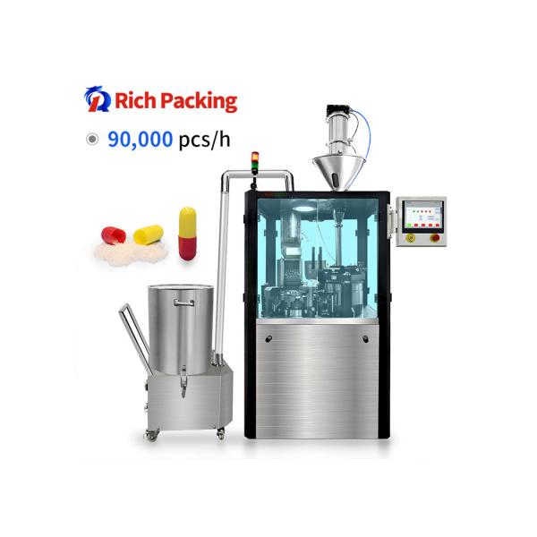 Rich Packing's NJP-1500D Capsule Filling Machine is an automatic capsule filler machine with CE, RoHS, EMC, LVD and SGS certifications, and a 7-14 days delivery time. It's a pharmaceutical capsule machine with high filling accuracy and capacity, and a 3 year warranty. The voltage of this machine is 220V/380V, and the control system is PLC. It's suitable for making capsules with high production efficiency, and is widely used in the pharmaceutical industry.